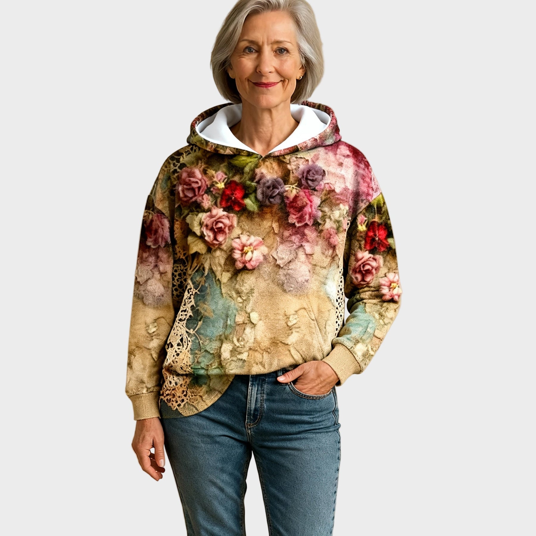 Ova pletenina ne grebe i ne iritira kožu zahvaljujući mekanoj, prozračnoj mješavini koja prija koži. Grije vas bez pregrijavanja, idealno za promjenjivo jesensko vrijeme. Materijal zadržava oblik – bez rastezanja ili opuštanja nakon nekoliko nošenja. Šareni, skandinavski nadahnuti uzorak dodaje razigran, a ipak moderan dodir svakom outfitu. Uparite ga s trapericama ili kratkim hlačama za ležeran look, ili ga podignite uz suknju i čizme. Kapuljača pruža dodatnu toplinu i opuštenu atmosferu.